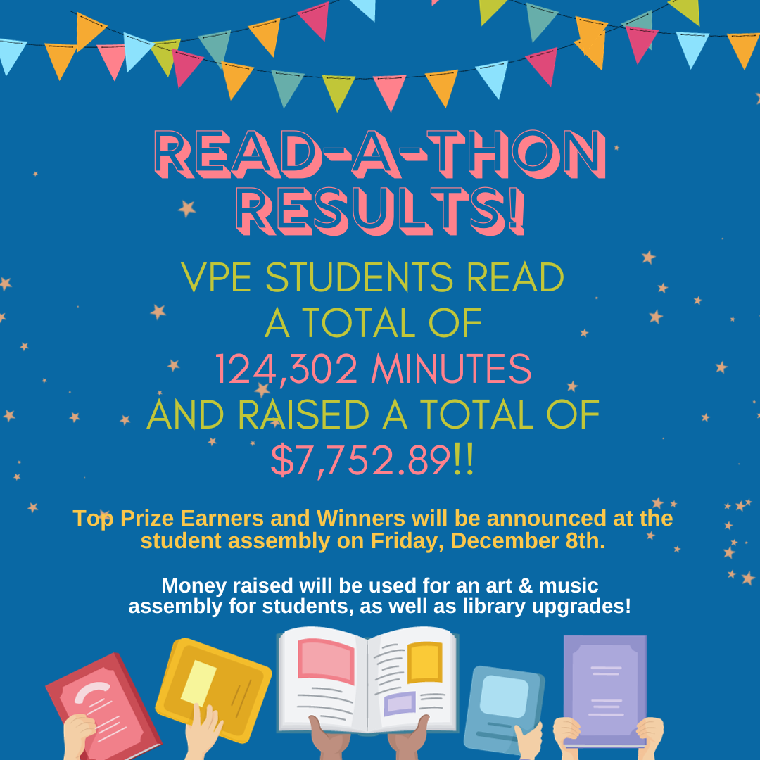 3. Our Read-a-thon has been a great success! Our students read over 124,302 minutes and raised over $7,700 for our school! Thank you for all your support in this fundraiser. The goal is to use the funds to create art opportunities for all of our students in the spring. We will be having an assembly December 8th to celebrate and acknowledge our top readers and the students who fundraised the most.
