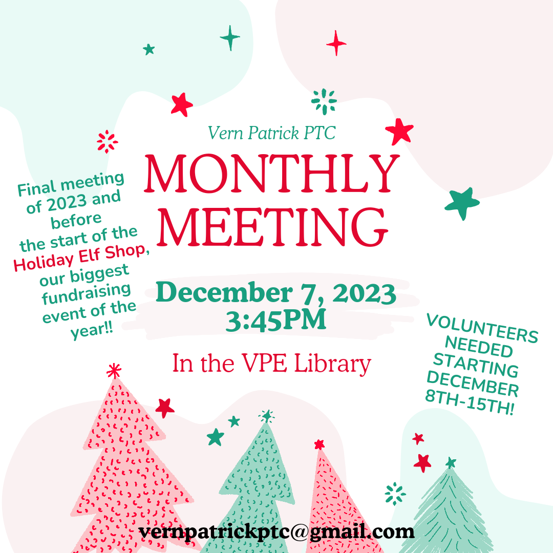 As we approach the end of the calendar year, it's hard to believe how quickly time has flown by! As the holiday season is upon us, our school is full of excitement and festive cheer. I would like to share a few updates and highlights of successes so far at Vern Patrick.